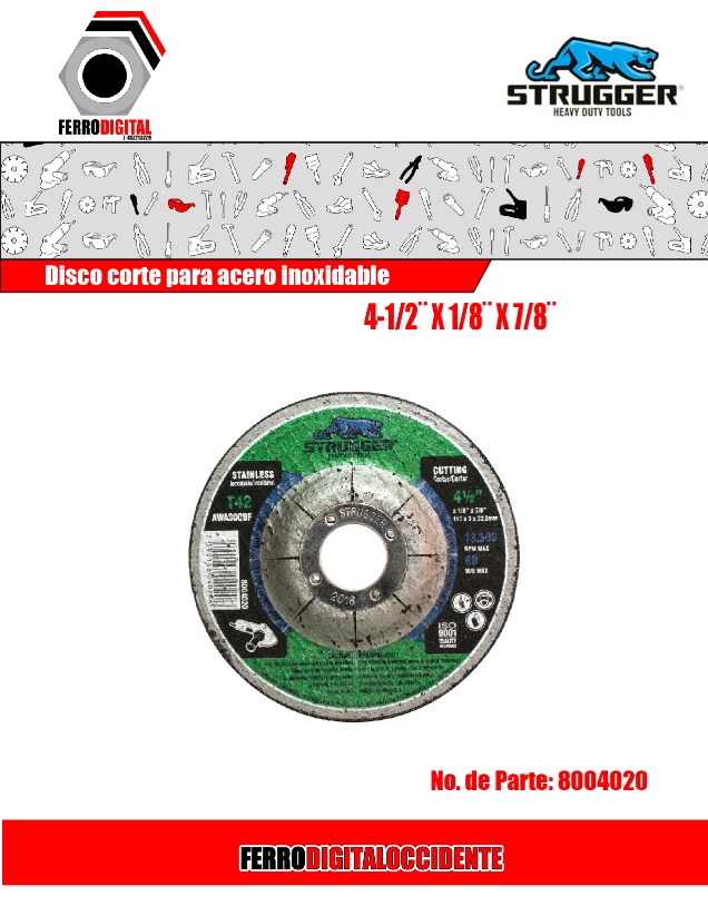 Producto anterior Siguiente producto DISCO DE CORTE PARA ACERO INOXIDABLE. 4-1/2¨X1/8¨X7/8¨ $ 0,49 DISCO DE CORTE PARA ACERO INOXIDABLE. 4-1/2¨X1/8¨X7/8¨ cantidad Añadir al carrito Pedir vía Whatsapp SKU: 8004020 Categoría: Herreria Etiqueta: strugger Compartir Descripción Descripción Productos relacionados COD: 8003501 Vista rápida Vista rápida HerreriaCEPILLO. 6¨X1/2¨XM14 ACERO AL CARBON 641151-0408M $ 11,45 Añadir al carrito Comprar COD: 8003006 Vista rápida Vista rápida HerreriaCEPILLO DE TAZA 5XM14 A/ LAT. 613065-0008M $ 9,48 Añadir al carrito Comprar COD: 8003503 Vista rápida Vista rápida HerreriaCEPILLO.6″x1/2″xM14 A/I 0,50MM $ 15,99 Añadir al carrito Comprar